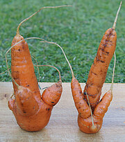 Mine egne varer er dyrket i gartneriets mangfoldighed af både gavnlige og ikke så gavnlige omgivelser. Koldt vejr betyder, at agurkerne er lidt mere krumme end normalt; lidt lus i salat er der normalt nogle uger om foråret; et lille gnavehul i et kålhoved (men det gør jo ikke hele kålen uanvendelig); et ormehul i en gulerod kan skæres væk; en 'tve-benet' gulerod kan sagtens skrælles og skæres...!!