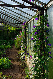 I drivhusene, som ikke er kunstigt opvarmede, startes sæsonen med alle de friske forårsgrøntsager, som radiser, spinat, salat, forårsløg, asparges mm., for derefter at bugne af tomater, agurker, peber osv.