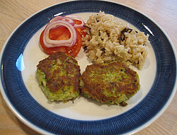 Server de vegetariske squash deller med en pastasalat eller med ris og tomatsalat.